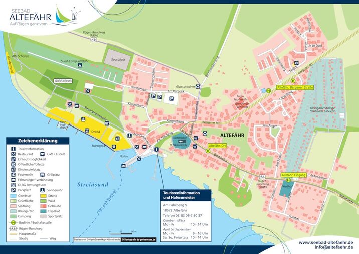 Die 1. Abfahrt auf der Insel Rügen ist Altefähr bei der Sie rechts abbiegen und direkt an eine T-Kreuzung heran fahren. Auch hier bitte rechts abbiegen, weiter an der Ampel geradeaus fahren, dann die nächste Abfahrt auf der linken Seite abbiegen in die Bergener Straße, nach ca. 700m geradeaus sind Sie in Altefähr.